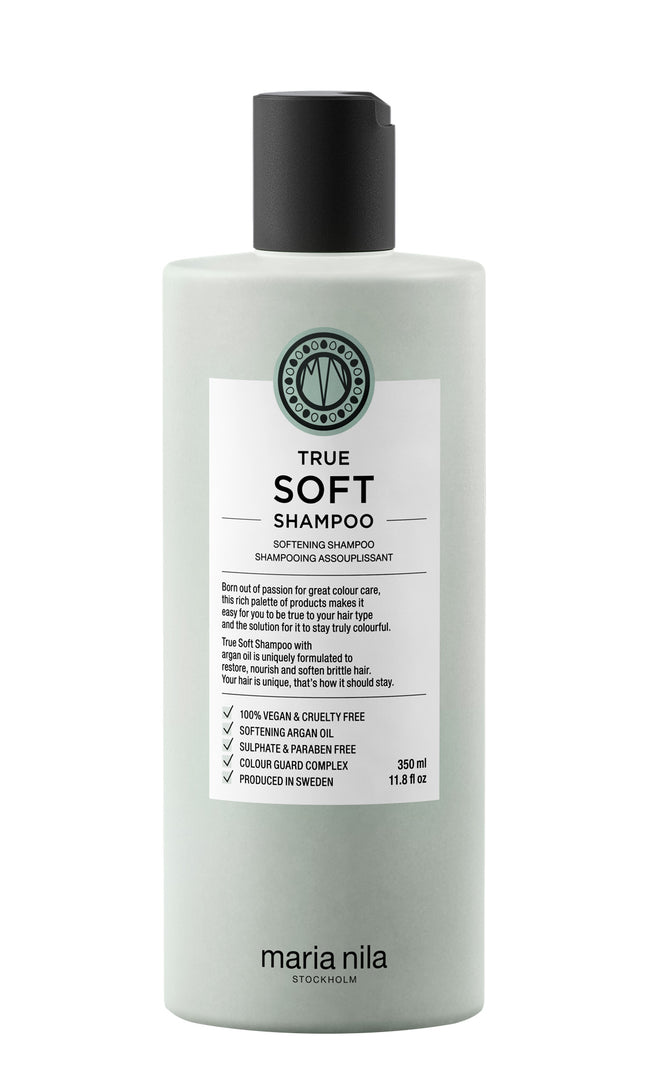 El aceite de argán suavizante, los antioxidantes y los ácidos grasos conservan la humedad y fortalecen el cabello. True Soft Shampoo tiene un aroma fresco con un aroma floral único de lirio, jazmín y rosa. Color Guard Complex preserva el color protegiendo tu cabello de la radiación UV y los radicales libres.