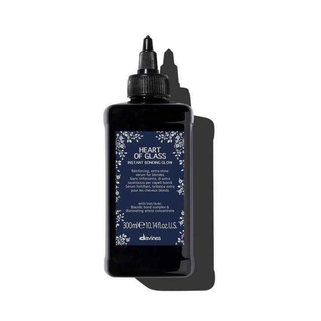 El Heart of Glass Instant Bonding Glow de Davines es un sérum de acción rápida diseñado para fortalecer e iluminar el cabello rubio, ya sea natural o teñido. Gracias a su fórmula innovadora enriquecida con el complejo Biacidic Bond y el concentrado de aminoácidos iluminadores, este tratamiento fortalece y repara la fibra capilar, aportando un brillo extra y prolongando la luminosidad e intensidad del color.