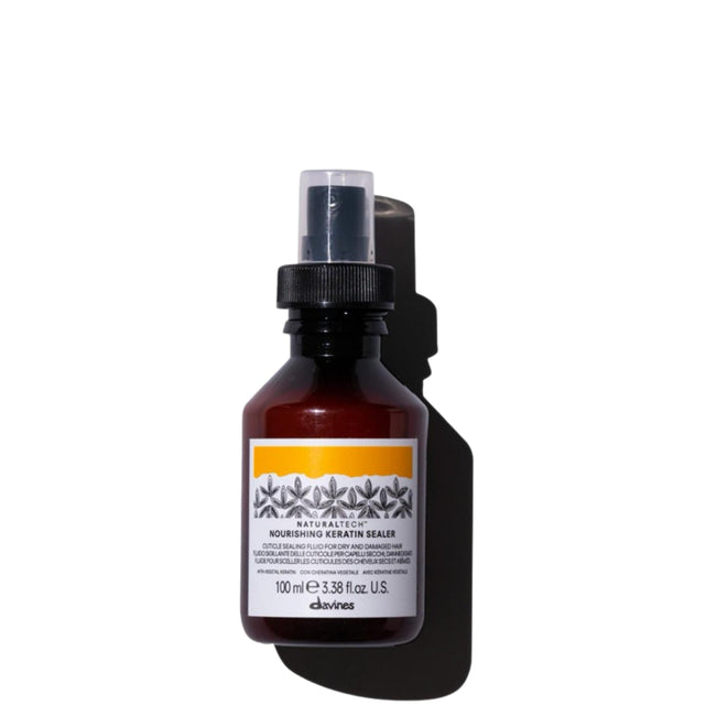 El Nourishing Keratin Sealer de Davines es un fluido sin enjuague diseñado para sellar las cutículas del cabello, aumentando su brillo y suavidad. Este tratamiento fortalece la fibra capilar, previniendo la formación de puntas abiertas y proporcionando una apariencia saludable desde la primera aplicación.