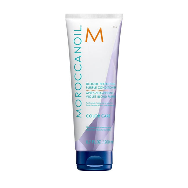 El Acondicionador Violeta Perfeccionador del Rubio de Moroccanoil es un acondicionador nutritivo diseñado para desenredar suavemente y suavizar el cabello mientras mejora el tono y la intensidad del color. Formulado con pigmentos violetas, este acondicionador contrarresta los tonos amarillos y naranjas no deseados en cabellos rubios, castaños aclarados y canosos. Además, incorpora la tecnología ArganID™ que ayuda a reparar y sellar la cutícula del cabello, proporcionando un color más brillante y radiante, con una apariencia y sensación más saludables.