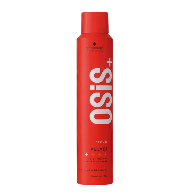 OSiS Velvet es un spray de fijación ligera con efecto cera que, gracias a su dispersión ultrafina, deja el cabello aterciopelado y ligero, incluso en cabellos finos.