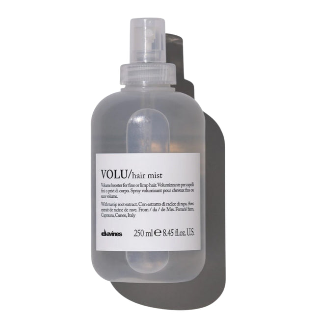El VOLU Hair Mist de Davines es una prebase sin aclarado diseñada para proporcionar volumen inmediato al cabello fino o sin cuerpo, elevándolo desde la raíz sin apelmazarlo y dejándolo suave y brillante.